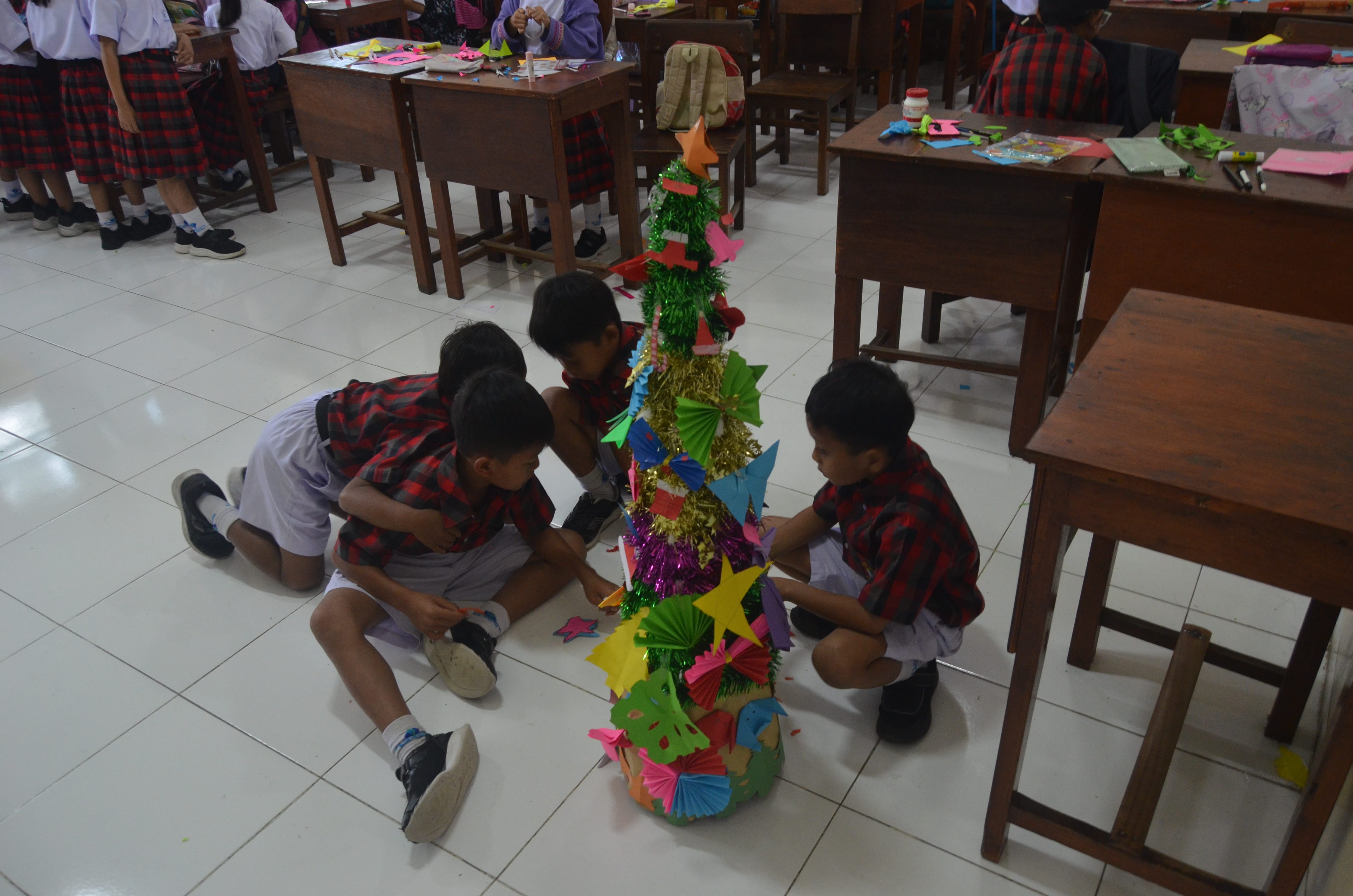 Memasuki hari kedua dan ketiga, fokus kegiatan beralih pada kreativitas dan kepedulian lingkungan. Pada Selasa (16/12/2025), siswa kelas 1-3 antusias merangkai kartu Natal dari bahan bekas, sementara siswa kelas 4-6 mengampanyekan nilai positif melalui pembuatan poster anti-bullying. Puncak kreativitas terjadi pada Rabu (17/12/2025), di mana seluruh siswa bekerja sama dalam kelompok untuk menyulap barang bekas menjadi pohon Natal beserta hiasannya yang unik. Melalui pemanfaatan limbah ini, pihak sekolah ingin menanamkan kesadaran ekologis dan kerja sama tim kepada setiap murid sejak dini.
